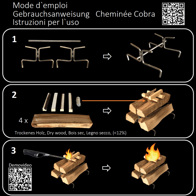 • Place the «CheminéeCobra» in the middle of the fireplace above the ash container